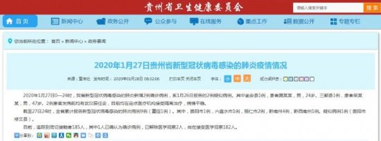 截至27日24时,全省累计报告新型冠状病毒感染的肺炎病例9例(重症1例)。其中,贵阳市1例,六盘水市1例,铜仁市2例,黔南州4例,黔西南州1例。疑似病例1例(贵阳市修文县)。