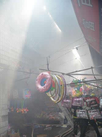 资阳市雁江区城北批发市场火灾现场烟雾弥漫