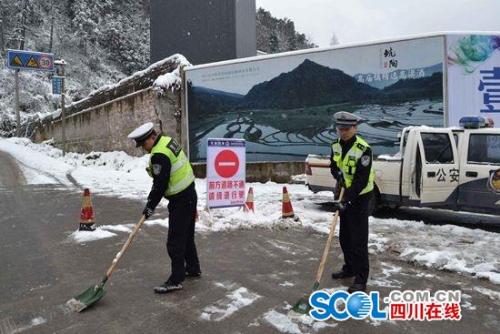 洪雅交警帮助清扫路面 李代华摄