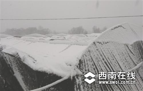 23日,内江东兴区高桥镇一草莓大棚被积雪压塌