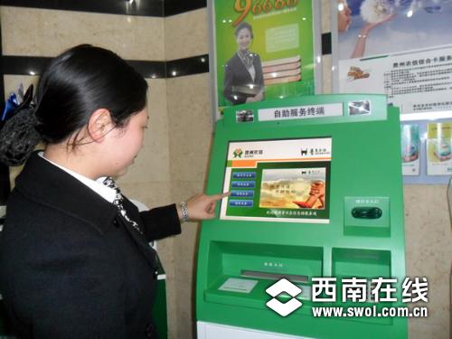 在银行自助服务终端机上办业务方便、快捷
