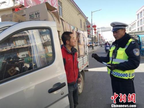 图为拉萨交警对货车进行例行检查。资料图 张雪芳 摄