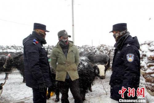 图为西藏日喀则边境管理支队帕里边境派出所民警深入辖区牧民家中了解受灾情况。 刘红卫 摄