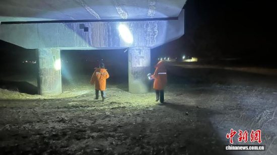 图为12月2日晚,地震发生后,西藏那曲公路养护部门工作人员排查公路设施。(西藏自治区交通运输厅供图)